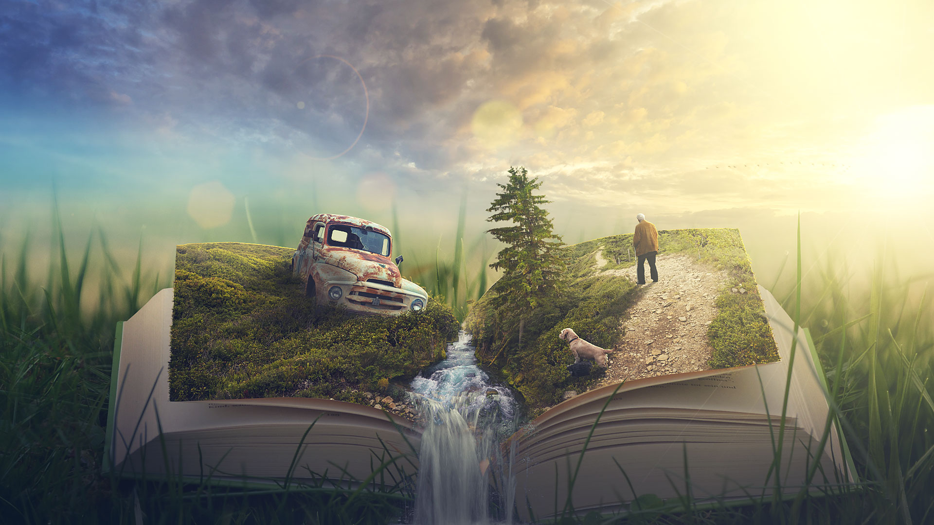 Book PSD Lens flare 1 Lens flare 2 Old man Sky Tree Car