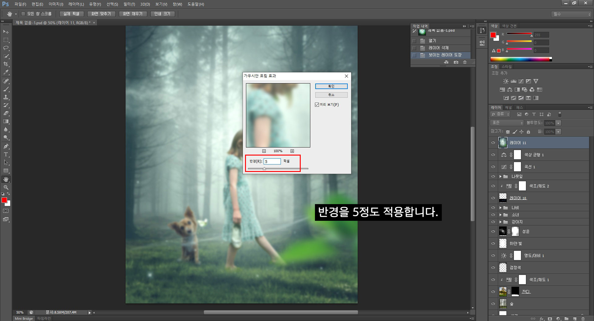 필터 - 흐림 효과 - 가우시안 흐림 효과로 이동합니다.