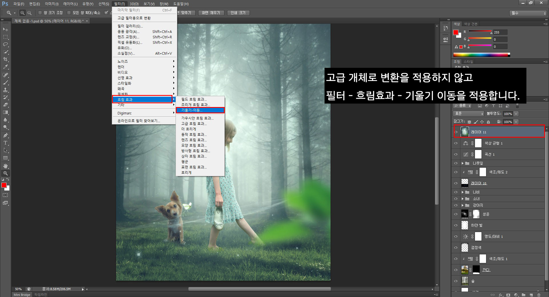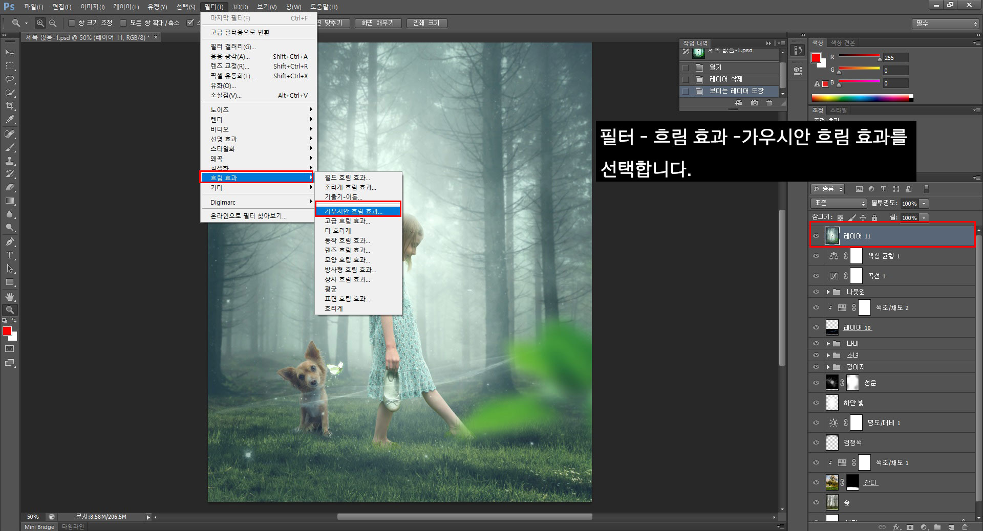 필터 - 흐림 효과 - 가우시안 흐림 효과로 이동합니다.